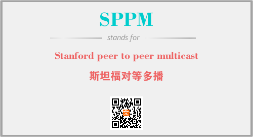 上述内容是“Stanford peer to peer multicast”作为“SPPM”的缩写,解释为“斯坦福对等多播”时的信息,以及英文缩略词SPPM所代表的英文单词,其对应的中文拼音、详细解释以及在英文中的流行度和相关分类、应用领域及应用示例等。