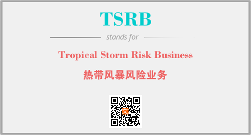 上述内容是“Tropical Storm Risk Business”作为“TSRB”的缩写,解释为“热带风暴风险业务”时的信息,以及英文缩略词TSRB所代表的英文单词,其对应的中文拼音、详细解释以及在英文中的流行度和相关分类、应用领域及应用示例等。