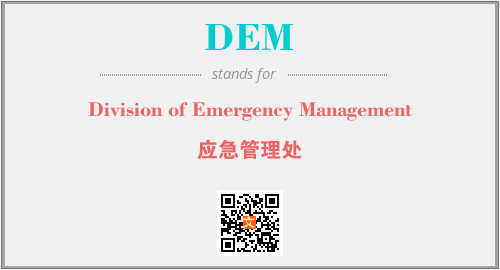 上述内容是“Division of Emergency Management”作为“DEM”的缩写,解释为“应急管理处”时的信息,以及英文缩略词DEM所代表的英文单词,其对应的中文拼音、详细解释以及在英文中的流行度和相关分类、应用领域及应用示例等。