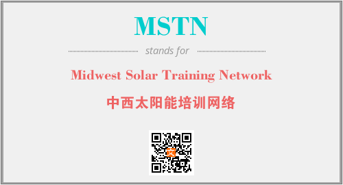 上述内容是“Midwest Solar Training Network”作为“MSTN”的缩写,解释为“中西太阳能培训网络”时的信息,以及英文缩略词MSTN所代表的英文单词,其对应的中文拼音、详细解释以及在英文中的流行度和相关分类、应用领域及应用示例等。