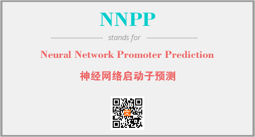 上述内容是“Neural Network Promoter Prediction”作为“NNPP”的缩写,解释为“神经网络启动子预测”时的信息,以及英文缩略词NNPP所代表的英文单词,其对应的中文拼音、详细解释以及在英文中的流行度和相关分类、应用领域及应用示例等。