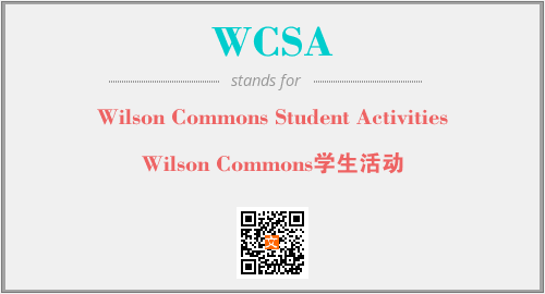 上述内容是“Wilson Commons Student Activities”作为“WCSA”的缩写,解释为“Wilson Commons学生活动”时的信息,以及英文缩略词WCSA所代表的英文单词,其对应的中文拼音、详细解释以及在英文中的流行度和相关分类、应用领域及应用示例等。