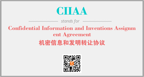 上述内容是“Confidential Information and Inventions Assignment Agreement”作为“CIIAA”的缩写,解释为“机密信息和发明转让协议”时的信息,以及英文缩略词CIIAA所代表的英文单词,其对应的中文拼音、详细解释以及在英文中的流行度和相关分类、应用领域及应用示例等。