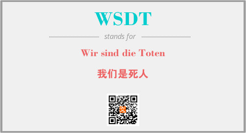 上述内容是“Wir sind die Toten”作为“WSDT”的缩写,解释为“我们是死人”时的信息,以及英文缩略词WSDT所代表的英文单词,其对应的中文拼音、详细解释以及在英文中的流行度和相关分类、应用领域及应用示例等。