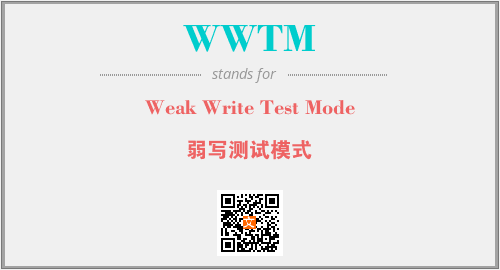 上述内容是“Weak Write Test Mode”作为“WWTM”的缩写,解释为“弱写测试模式”时的信息,以及英文缩略词WWTM所代表的英文单词,其对应的中文拼音、详细解释以及在英文中的流行度和相关分类、应用领域及应用示例等。