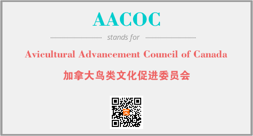 上述内容是“Avicultural Advancement Council of Canada”作为“AACOC”的缩写,解释为“加拿大鸟类文化促进委员会”时的信息,以及英文缩略词AACOC所代表的英文单词,其对应的中文拼音、详细解释以及在英文中的流行度和相关分类、应用领域及应用示例等。