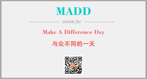 以上为Make A Difference Day英文缩略词MADD的中文解释,以及该英文缩写在英语的流行度、分类和应用领域方面的信息。