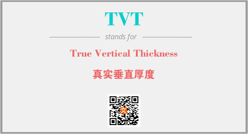 上述内容是“True Vertical Thickness”作为“TVT”的缩写,解释为“真实垂直厚度”时的信息,以及英文缩略词TVT所代表的英文单词,其对应的中文拼音、详细解释以及在英文中的流行度和相关分类、应用领域及应用示例等。