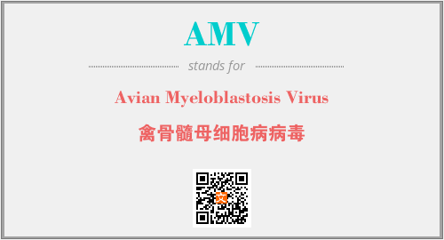 上述内容是“Avian Myeloblastosis Virus”作为“AMV”的缩写,解释为“禽骨髓母细胞病病毒”时的信息,以及英文缩略词AMV所代表的英文单词,其对应的中文拼音、详细解释以及在英文中的流行度和相关分类、应用领域及应用示例等。