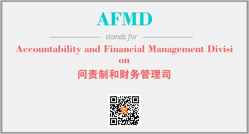 英文缩略词“AFMD”经常作为“Accountability and Financial Management Division”的英文缩写来使用,中文表示:“问责制和财务管理司”。本文将详细介绍英文缩写词AFMD所代表英文单词,其对应的中文拼音、详细解释以及在英语中的流行度。此外,还有关于缩略词AFMD的分类、应用领域及相关应用示例等。