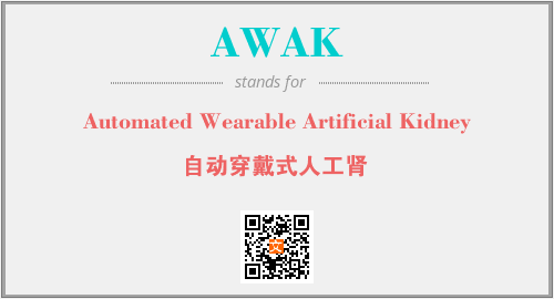 上述内容是“Automated Wearable Artificial Kidney”作为“AWAK”的缩写,解释为“自动穿戴式人工肾”时的信息,以及英文缩略词AWAK所代表的英文单词,其对应的中文拼音、详细解释以及在英文中的流行度和相关分类、应用领域及应用示例等。