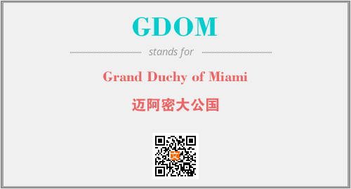 英文缩略词“GDOM”经常作为“Grand Duchy of Miami”的英文缩写来使用,中文表示:“迈阿密大公国”。本文将详细介绍英文缩写词GDOM所代表英文单词,其对应的中文拼音、详细解释以及在英语中的流行度。此外,还有关于缩略词GDOM的分类、应用领域及相关应用示例等。