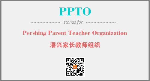 上述内容是“Pershing Parent Teacher Organization”作为“PPTO”的缩写,解释为“潘兴家长教师组织”时的信息,以及英文缩略词PPTO所代表的英文单词,其对应的中文拼音、详细解释以及在英文中的流行度和相关分类、应用领域及应用示例等。