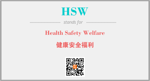 上述内容是“Health Safety Welfare”作为“HSW”的缩写,解释为“健康安全福利”时的信息,以及英文缩略词HSW所代表的英文单词,其对应的中文拼音、详细解释以及在英文中的流行度和相关分类、应用领域及应用示例等。