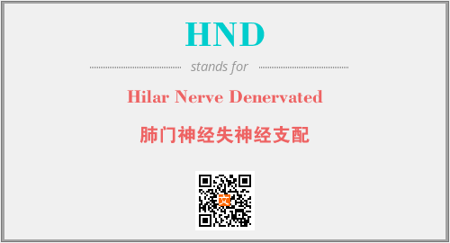 以上为Hilar Nerve Denervated英文缩略词HND的中文解释,以及该英文缩写在英语的流行度、分类和应用领域方面的信息。