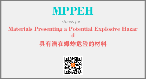 上述内容是“Materials Presenting a Potential Explosive Hazard”作为“MPPEH”的缩写,解释为“具有潜在爆炸危险的材料”时的信息,以及英文缩略词MPPEH所代表的英文单词,其对应的中文拼音、详细解释以及在英文中的流行度和相关分类、应用领域及应用示例等。