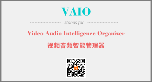 上述内容是“Video Audio Intelligence Organizer”作为“VAIO”的缩写,解释为“视频音频智能管理器”时的信息,以及英文缩略词VAIO所代表的英文单词,其对应的中文拼音、详细解释以及在英文中的流行度和相关分类、应用领域及应用示例等。