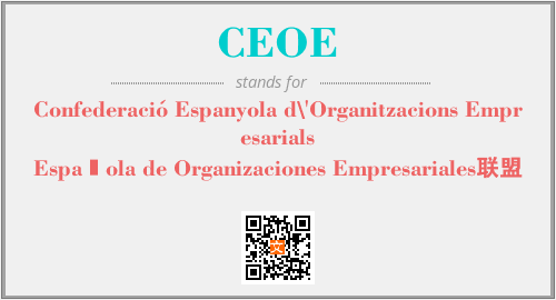 以上为Confederació Espanyola d\'Organitzacions Empresarials英文缩略词CEOE的中文解释,以及该英文缩写在英语的流行度、分类和应用领域方面的信息。