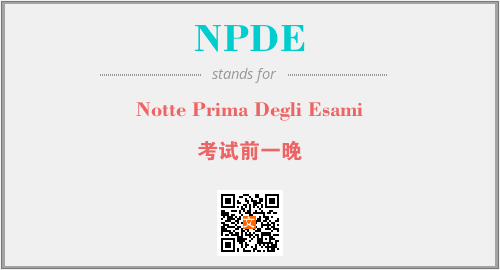 以上为Notte Prima Degli Esami英文缩略词NPDE的中文解释,以及该英文缩写在英语的流行度、分类和应用领域方面的信息。