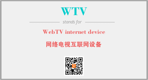 英文缩略词“WTV”经常作为“WebTV internet device”的英文缩写来使用,中文表示:“网络电视互联网设备”。本文将详细介绍英文缩写词WTV所代表英文单词,其对应的中文拼音、详细解释以及在英语中的流行度。此外,还有关于缩略词WTV的分类、应用领域及相关应用示例等。