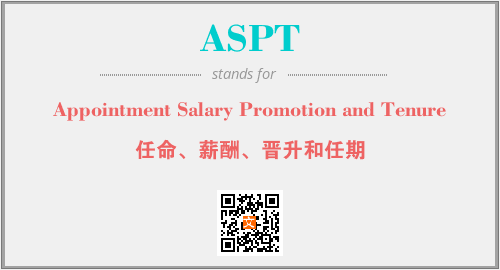上述内容是“Appointment Salary Promotion and Tenure”作为“ASPT”的缩写,解释为“任命、薪酬、晋升和任期”时的信息,以及英文缩略词ASPT所代表的英文单词,其对应的中文拼音、详细解释以及在英文中的流行度和相关分类、应用领域及应用示例等。