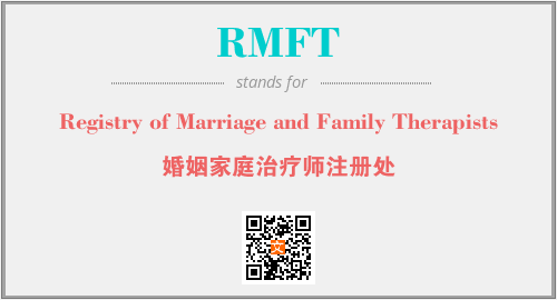 英文缩略词“RMFT”经常作为“Registry of Marriage and Family Therapists”的英文缩写来使用,中文表示:“婚姻家庭治疗师注册处”。本文将详细介绍英文缩写词RMFT所代表英文单词,其对应的中文拼音、详细解释以及在英语中的流行度。此外,还有关于缩略词RMFT的分类、应用领域及相关应用示例等。
