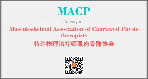 英文缩略词“MACP”经常作为“Musculoskeletal Association of Chartered Physiotherapists”的英文缩写来使用,中文表示:“特许物理治疗师肌肉骨骼协会”。本文将详细介绍英文缩写词MACP所代表英文单词,其对应的中文拼音、详细解释以及在英语中的流行度。此外,还有关于缩略词MACP的分类、应用领域及相关应用示例等。