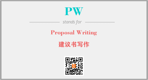 上述内容是“Proposal Writing”作为“PW”的缩写,解释为“建议书写作”时的信息,以及英文缩略词PW所代表的英文单词,其对应的中文拼音、详细解释以及在英文中的流行度和相关分类、应用领域及应用示例等。