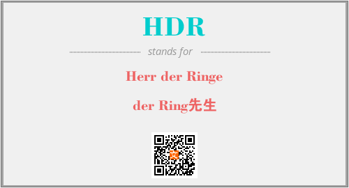英文缩略词“HDR”经常作为“Herr der Ringe”的英文缩写来使用,中文表示:“der Ring先生”。本文将详细介绍英文缩写词HDR所代表英文单词,其对应的中文拼音、详细解释以及在英语中的流行度。此外,还有关于缩略词HDR的分类、应用领域及相关应用示例等。