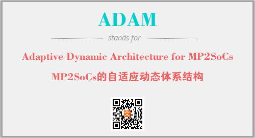 上述内容是“Adaptive Dynamic Architecture for MP2SoCs”作为“ADAM”的缩写,解释为“MP2SoCs的自适应动态体系结构”时的信息,以及英文缩略词ADAM所代表的英文单词,其对应的中文拼音、详细解释以及在英文中的流行度和相关分类、应用领域及应用示例等。