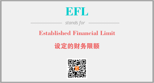 上述内容是“Established Financial Limit”作为“EFL”的缩写,解释为“设定的财务限额”时的信息,以及英文缩略词EFL所代表的英文单词,其对应的中文拼音、详细解释以及在英文中的流行度和相关分类、应用领域及应用示例等。