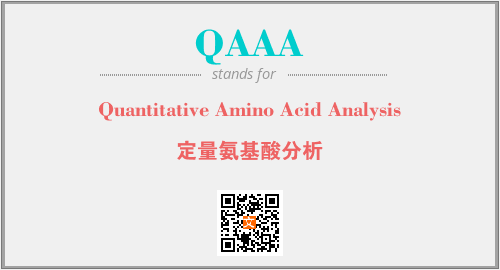 上述内容是“Quantitative Amino Acid Analysis”作为“QAAA”的缩写,解释为“定量氨基酸分析”时的信息,以及英文缩略词QAAA所代表的英文单词,其对应的中文拼音、详细解释以及在英文中的流行度和相关分类、应用领域及应用示例等。