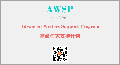 上述内容是“Advanced Writers Support Program”作为“AWSP”的缩写,解释为“高级作家支持计划”时的信息,以及英文缩略词AWSP所代表的英文单词,其对应的中文拼音、详细解释以及在英文中的流行度和相关分类、应用领域及应用示例等。