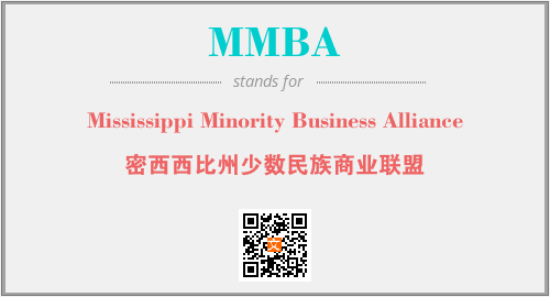 上述内容是“Mississippi Minority Business Alliance”作为“MMBA”的缩写,解释为“密西西比州少数民族商业联盟”时的信息,以及英文缩略词MMBA所代表的英文单词,其对应的中文拼音、详细解释以及在英文中的流行度和相关分类、应用领域及应用示例等。