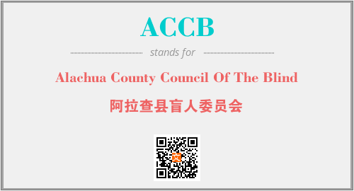 英文缩略词“ACCB”经常作为“Alachua County Council Of The Blind”的英文缩写来使用,中文表示:“阿拉查县盲人委员会”。本文将详细介绍英文缩写词ACCB所代表英文单词,其对应的中文拼音、详细解释以及在英语中的流行度。此外,还有关于缩略词ACCB的分类、应用领域及相关应用示例等。