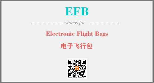 英文缩略词“EFB”经常作为“Electronic Flight Bags”的英文缩写来使用,中文表示:“电子飞行包”。本文将详细介绍英文缩写词EFB所代表英文单词,其对应的中文拼音、详细解释以及在英语中的流行度。此外,还有关于缩略词EFB的分类、应用领域及相关应用示例等。