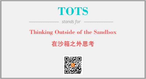 以上为Thinking Outside of the Sandbox英文缩略词TOTS的中文解释,以及该英文缩写在英语的流行度、分类和应用领域方面的信息。
