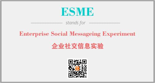 英文缩略词“ESME”经常作为“Enterprise Social Messageing Experiment”的英文缩写来使用,中文表示:“企业社交信息实验”。本文将详细介绍英文缩写词ESME所代表英文单词,其对应的中文拼音、详细解释以及在英语中的流行度。此外,还有关于缩略词ESME的分类、应用领域及相关应用示例等。