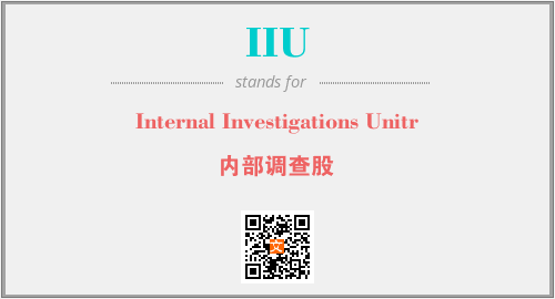 英文缩略词“IIU”经常作为“Internal Investigations Unitr”的英文缩写来使用,中文表示:“内部调查股”。本文将详细介绍英文缩写词IIU所代表英文单词,其对应的中文拼音、详细解释以及在英语中的流行度。此外,还有关于缩略词IIU的分类、应用领域及相关应用示例等。