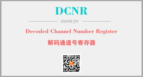 上述内容是“Decoded Channel Number Register”作为“DCNR”的缩写,解释为“解码通道号寄存器”时的信息,以及英文缩略词DCNR所代表的英文单词,其对应的中文拼音、详细解释以及在英文中的流行度和相关分类、应用领域及应用示例等。