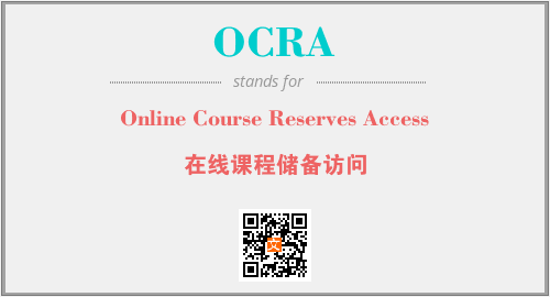 英文缩略词“OCRA”经常作为“Online Course Reserves Access”的英文缩写来使用,中文表示:“在线课程储备访问”。本文将详细介绍英文缩写词OCRA所代表英文单词,其对应的中文拼音、详细解释以及在英语中的流行度。此外,还有关于缩略词OCRA的分类、应用领域及相关应用示例等。