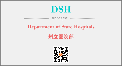 上述内容是“Department of State Hospitals”作为“DSH”的缩写,解释为“州立医院部”时的信息,以及英文缩略词DSH所代表的英文单词,其对应的中文拼音、详细解释以及在英文中的流行度和相关分类、应用领域及应用示例等。