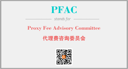 上述内容是“Proxy Fee Advisory Committee”作为“PFAC”的缩写,解释为“代理费咨询委员会”时的信息,以及英文缩略词PFAC所代表的英文单词,其对应的中文拼音、详细解释以及在英文中的流行度和相关分类、应用领域及应用示例等。