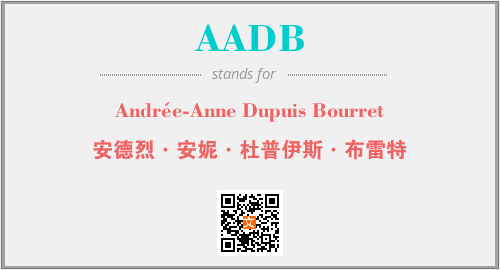以上为Andrée-Anne Dupuis Bourret英文缩略词AADB的中文解释,以及该英文缩写在英语的流行度、分类和应用领域方面的信息。