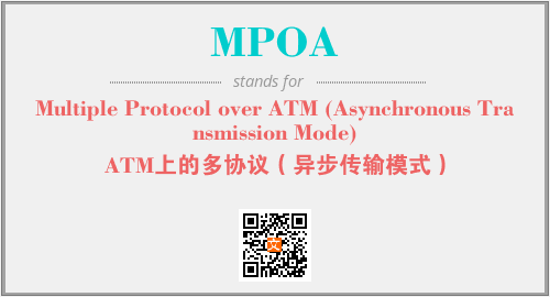 上述内容是“Multiple Protocol over ATM (Asynchronous Transmission Mode)”作为“MPOA”的缩写,解释为“ATM上的多协议(异步传输模式)”时的信息,以及英文缩略词MPOA所代表的英文单词,其对应的中文拼音、详细解释以及在英文中的流行度和相关分类、应用领域及应用示例等。