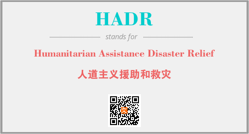 上述内容是“Humanitarian Assistance Disaster Relief”作为“HADR”的缩写,解释为“人道主义援助和救灾”时的信息,以及英文缩略词HADR所代表的英文单词,其对应的中文拼音、详细解释以及在英文中的流行度和相关分类、应用领域及应用示例等。