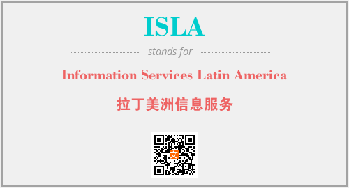 英文缩略词“ISLA”经常作为“Information Services Latin America”的英文缩写来使用,中文表示:“拉丁美洲信息服务”。本文将详细介绍英文缩写词ISLA所代表英文单词,其对应的中文拼音、详细解释以及在英语中的流行度。此外,还有关于缩略词ISLA的分类、应用领域及相关应用示例等。