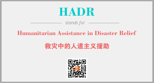 上述内容是“Humanitarian Assistance in Disaster Relief”作为“HADR”的缩写,解释为“救灾中的人道主义援助”时的信息,以及英文缩略词HADR所代表的英文单词,其对应的中文拼音、详细解释以及在英文中的流行度和相关分类、应用领域及应用示例等。