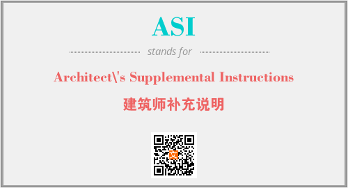 英文缩略词“ASI”经常作为“Architect\'s Supplemental Instructions”的英文缩写来使用,中文表示:“建筑师补充说明”。本文将详细介绍英文缩写词ASI所代表英文单词,其对应的中文拼音、详细解释以及在英语中的流行度。此外,还有关于缩略词ASI的分类、应用领域及相关应用示例等。