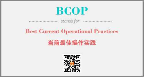 上述内容是“Best Current Operational Practices”作为“BCOP”的缩写,解释为“当前最佳操作实践”时的信息,以及英文缩略词BCOP所代表的英文单词,其对应的中文拼音、详细解释以及在英文中的流行度和相关分类、应用领域及应用示例等。